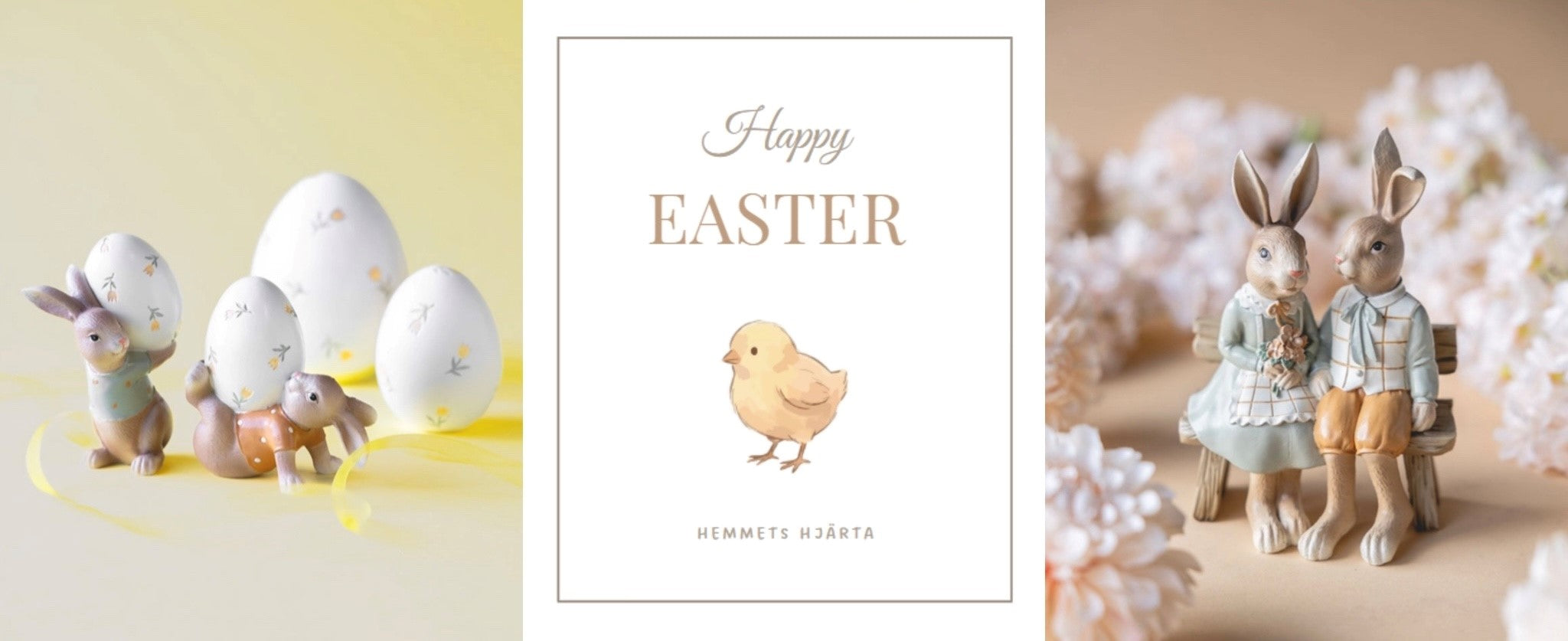 Vores påskeafdeling er begyndt at fyldes op med søde dekorationer, bløde pasteller og alt, hvad der skaber den dejlige forårsfølelse derhjemme.