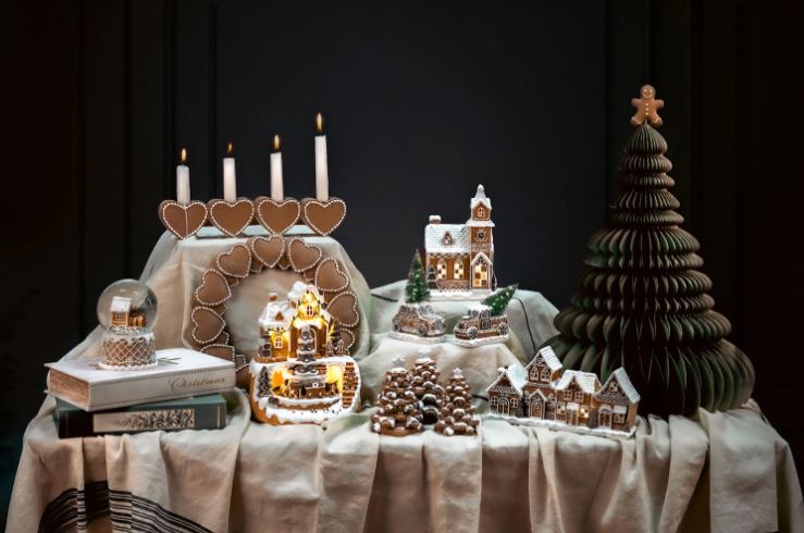 Ingefærby med LED-lys for en hyggelig følelse. Fremstillet i poly.
