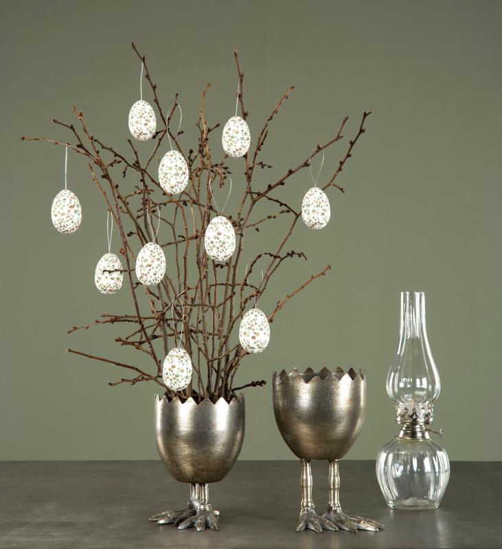 Påskepynt Skjuler Krukke Urtepotte Ben Æg Sølv 13x17cm 1 stk