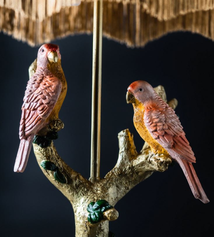 Denne lampeskærm med fugle på en gren lyser op i vinduet eller på bordet i stuen og giver indretningen et eksotisk præg. Fremstillet i poly.
