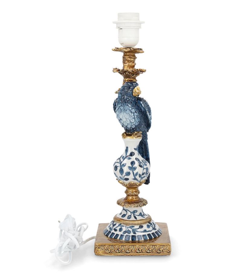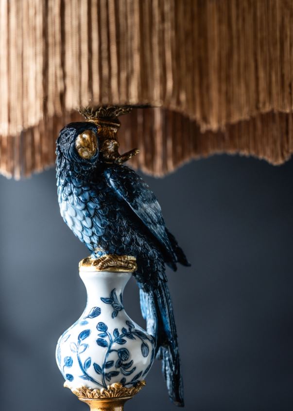 Giv belysningen i rummet et eksotisk touch med denne lampeskærmsfod med papegøje. Fremstillet i poly.