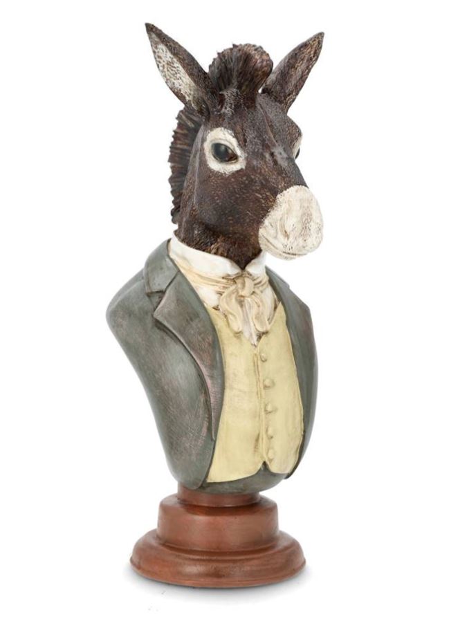 Giv boligindretningen et legesyg touch med en buste af et velklædt æsel. Fremstillet i poly.