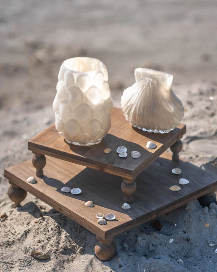 Smuk glasvase i skallerdesign, som giver en dejlig følelse til snitblomsterne eller buketten.