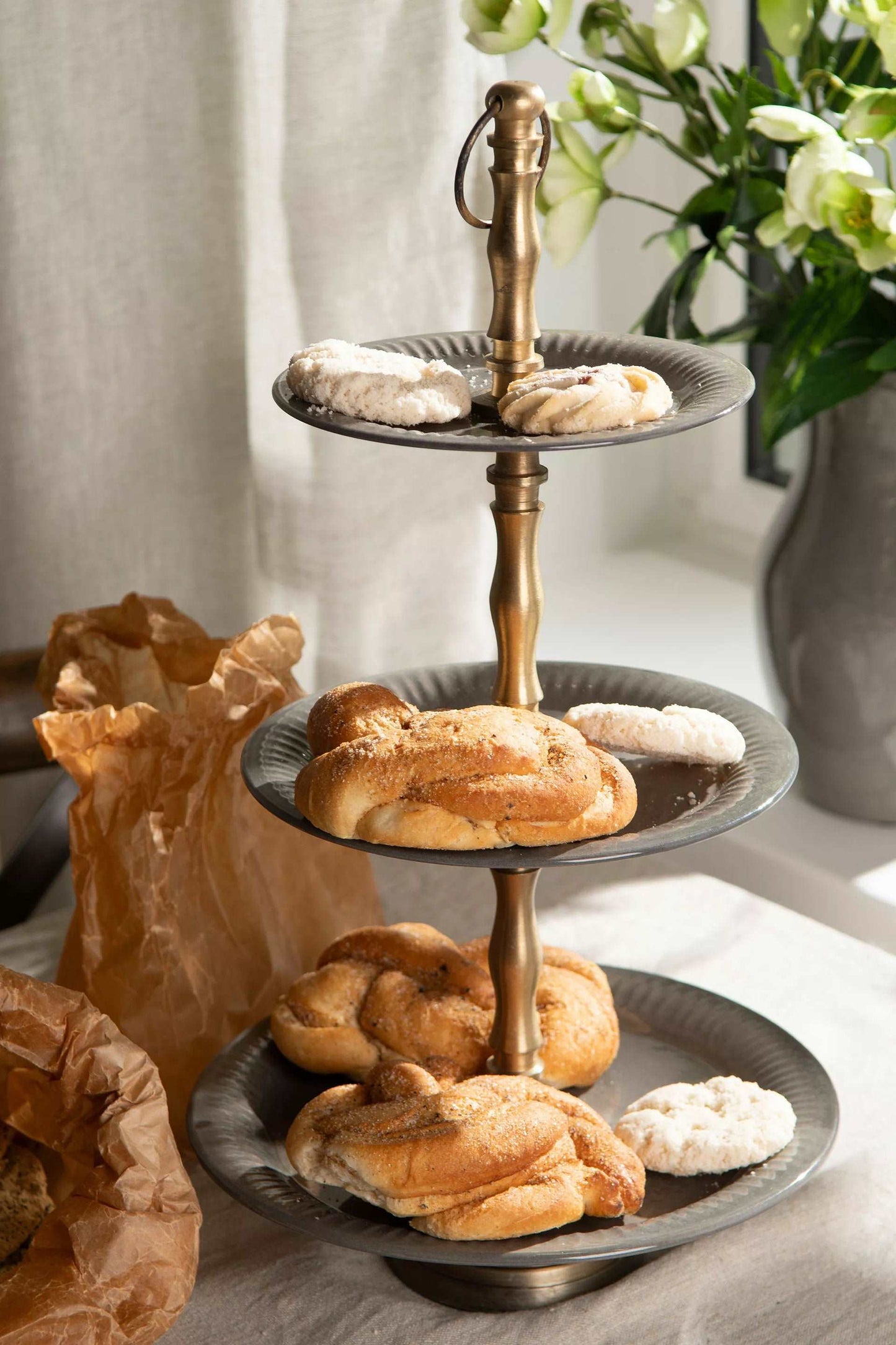 Dekorativt fad bakke Etagere Striber Granit Ø25x45cm