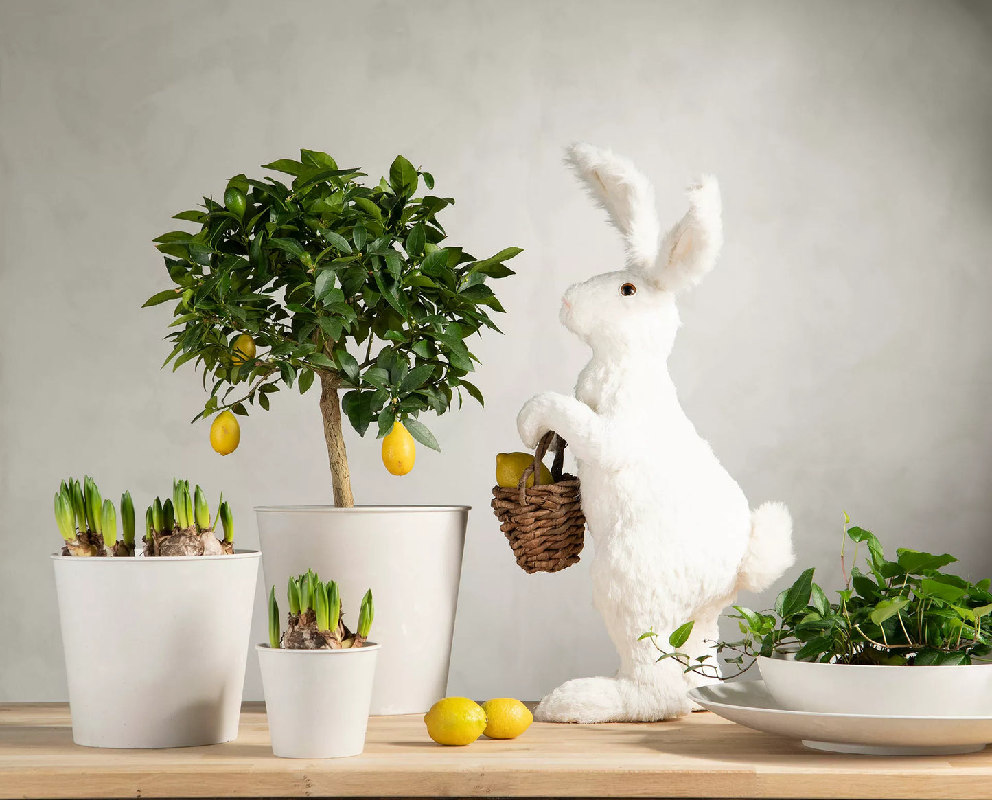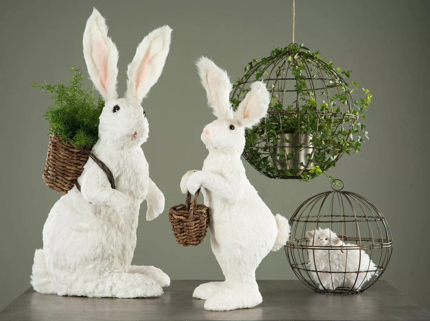Stor, blød og aldeles dejlig hare med kunstpels og kurv.