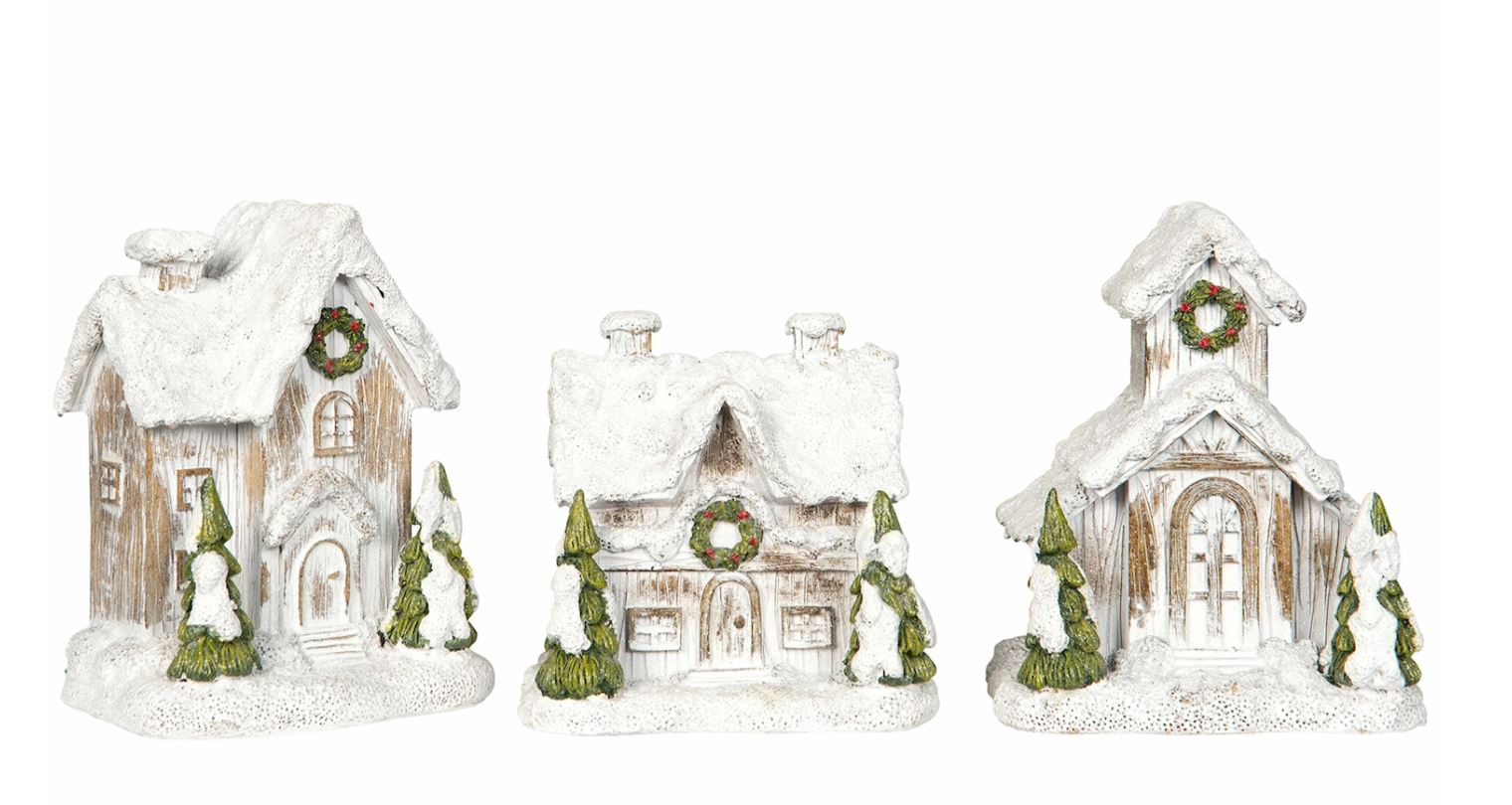 Indendørs juledekoration 3-pak Hus Snøby Mix
