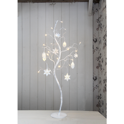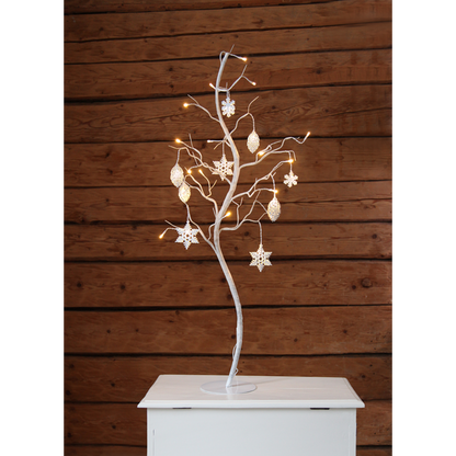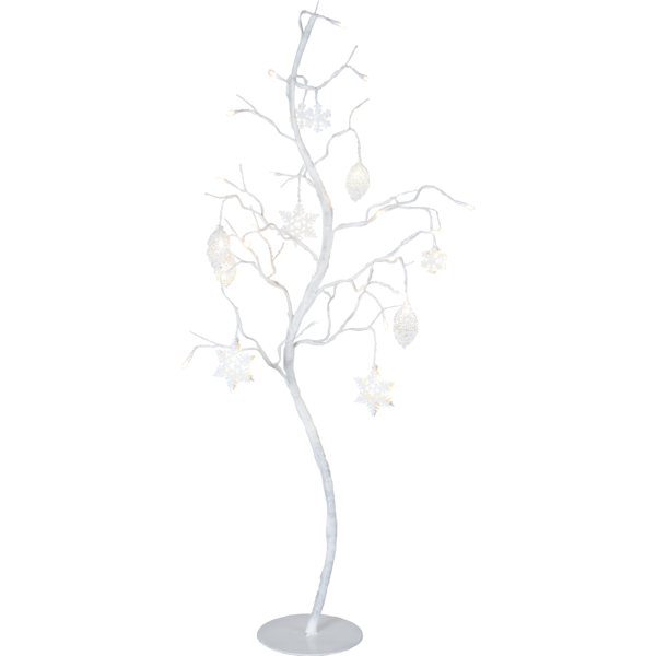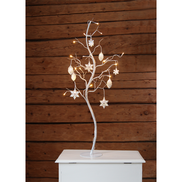 Hvidt dekorativt træ med fine metaldetaljer. Træet har 27 LED-lyskilder, der giver et vidunderligt varmt hvidt lys. Smuk dekoration til at dekorere med indendørs.