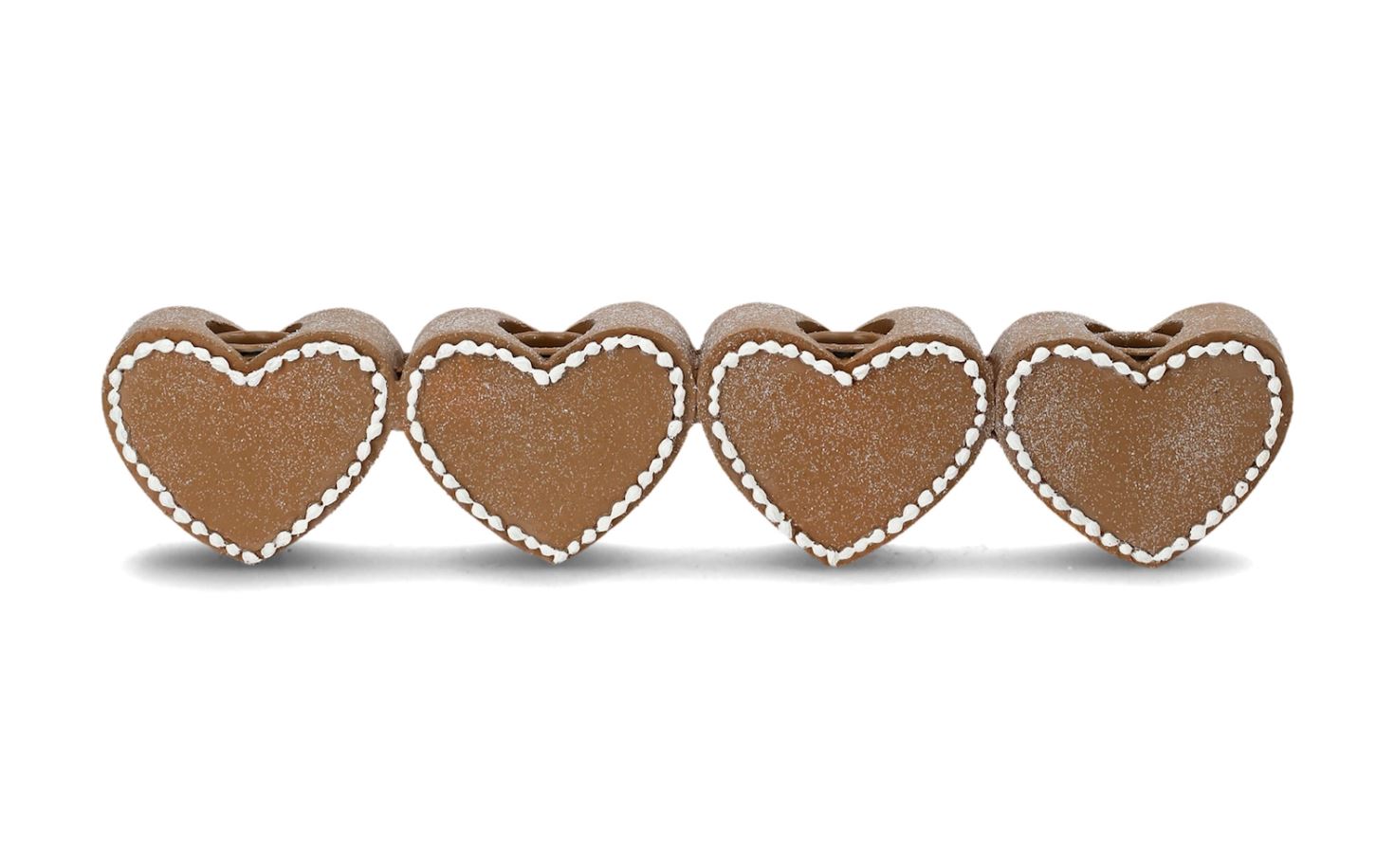 Lysestage med peberkagehjerter og plads til fire lys.