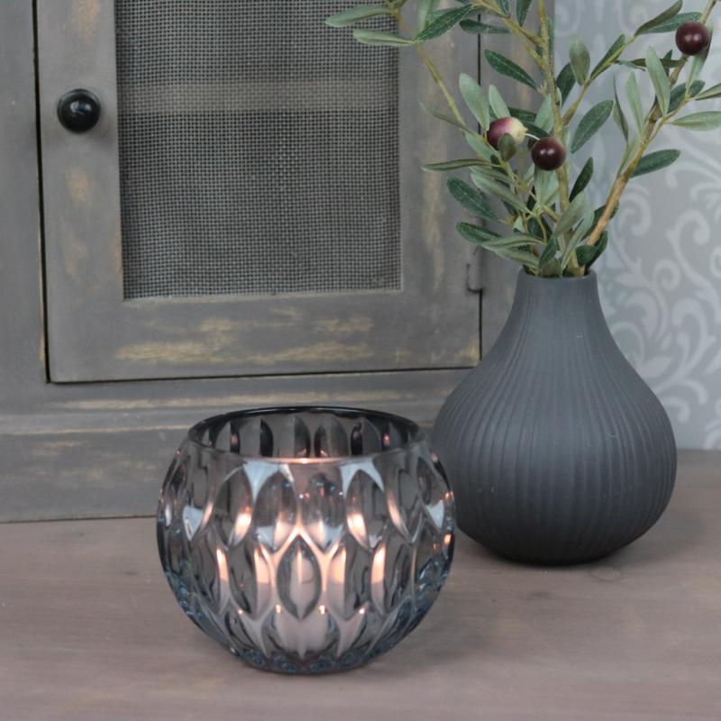 Lantern Lyselygte Glas Blågrå 12x10cm