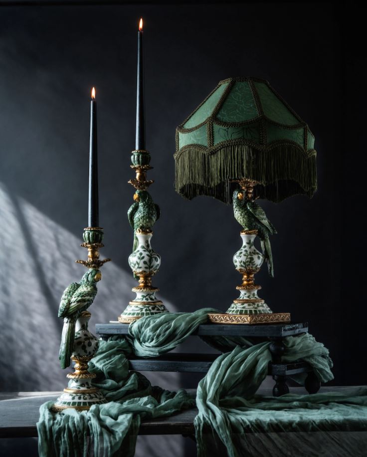 Giv belysningen i rummet et eksotisk præg med denne lysestage med en papegøje. Fremstillet i poly. Fås i flere farver.