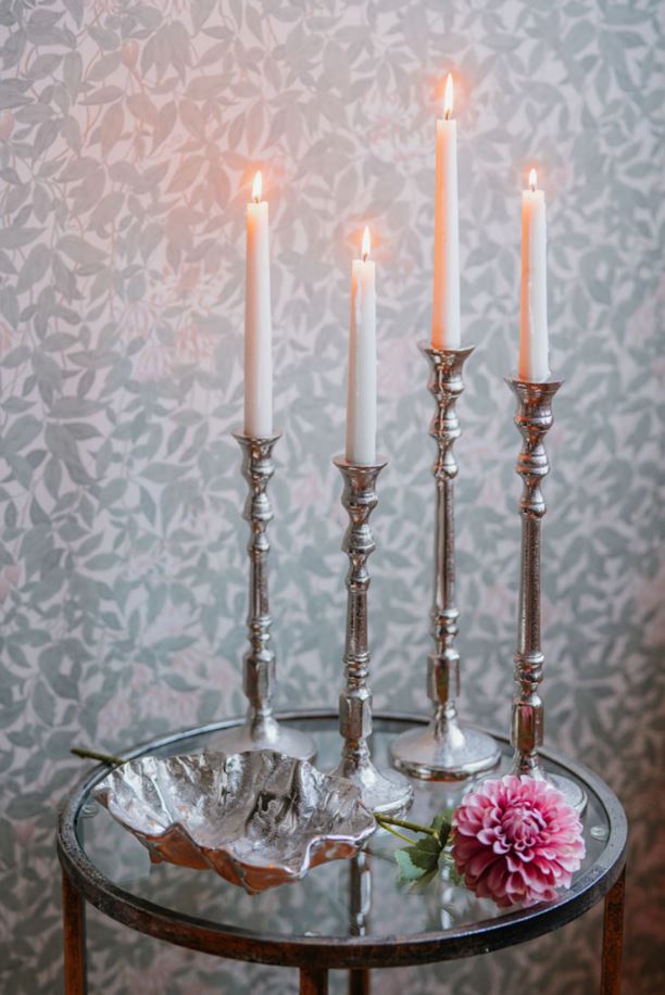 Olivia er en fin lysestage, som sammen med et kronelys spreder et smukt skær af levende lys i rummet. Fremstillet i metal.