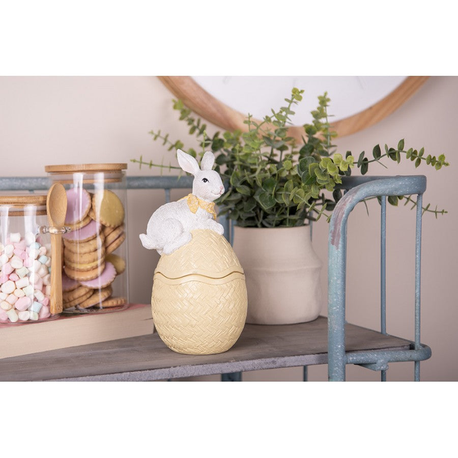 Påskepynt Dekorativ skål Æg 11x10x20 cm Gul Hvid kanin