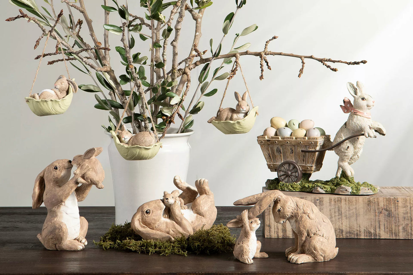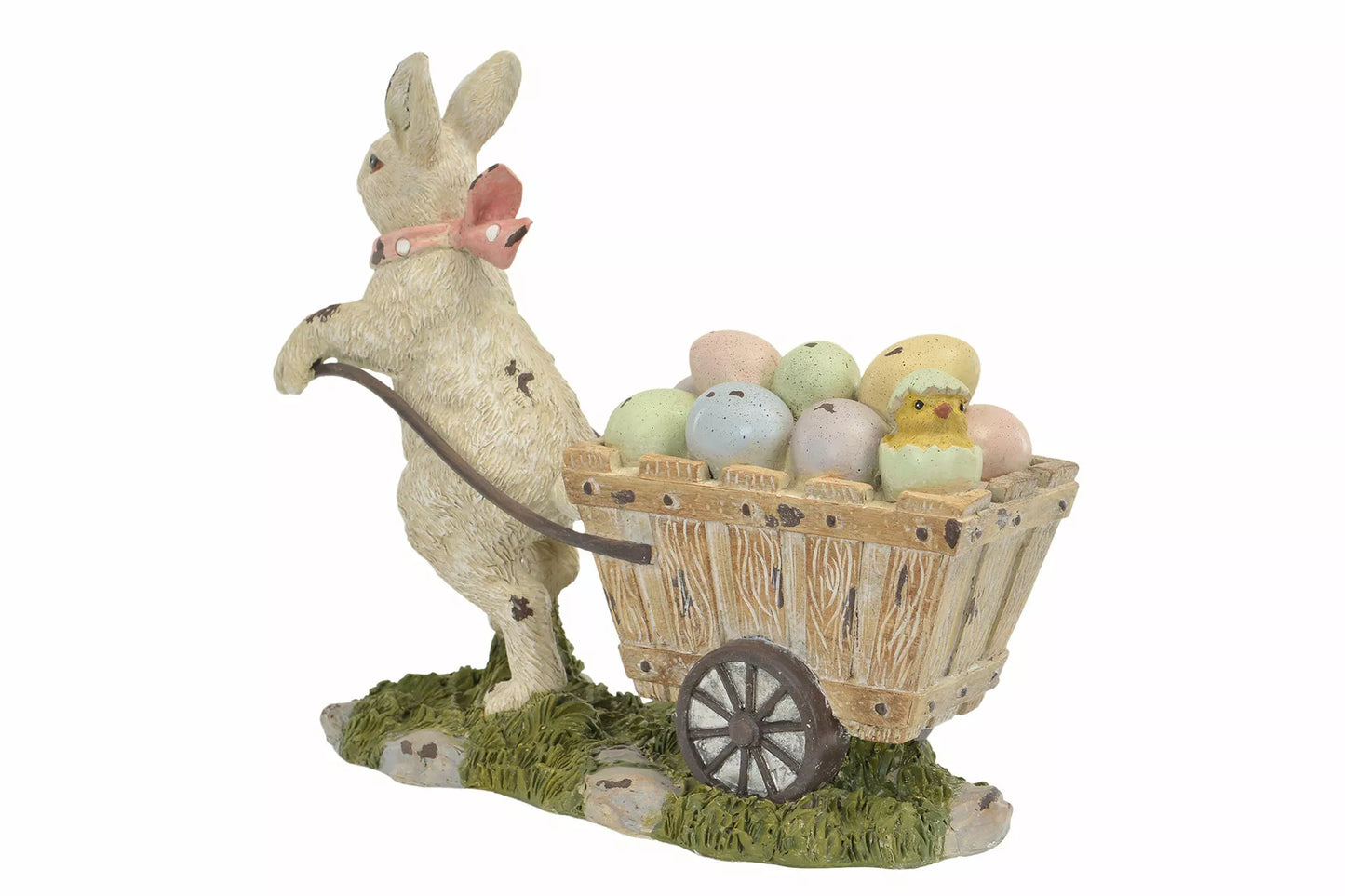 Påskepynt Hare drar Egg Vogn Polyresin 23x9x20cm
