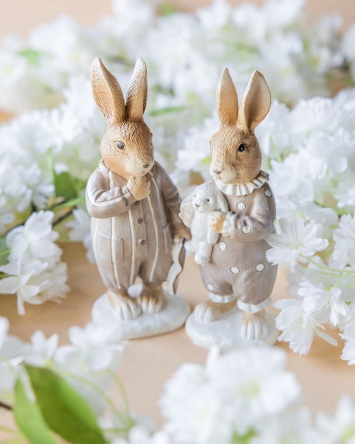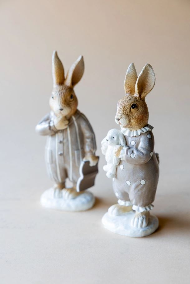 To kaniner i pyjamas. Perfekt som dekoration i vinduet eller på sofabordet.