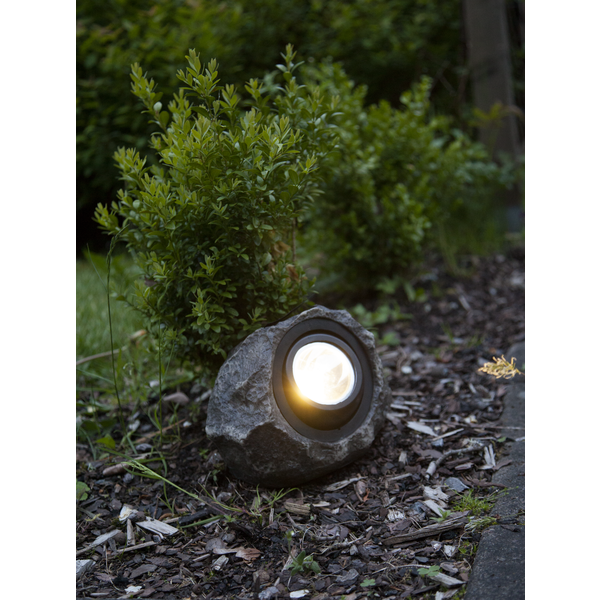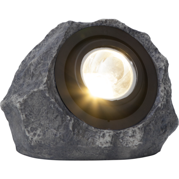 Solens spotlight i form af en sten, skinner med 18 lumen og er retningsbestemt