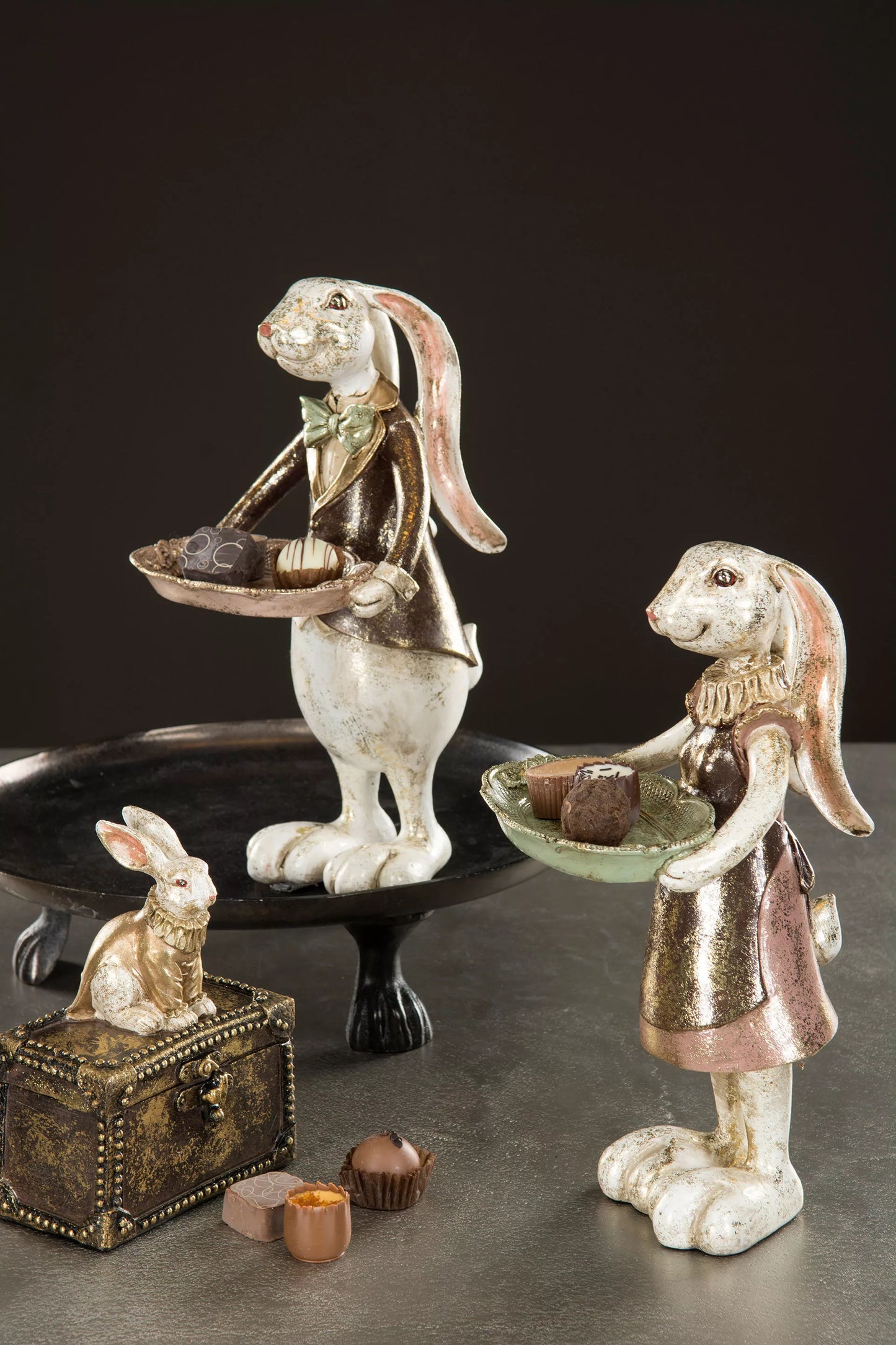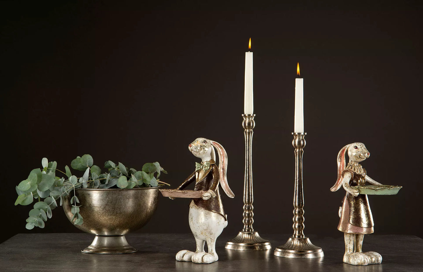 Påskepynt Kanin dreng med fad 14x28cm